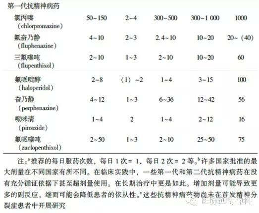 一、常用抗精神病藥長期治療推薦的(口服)給藥劑量