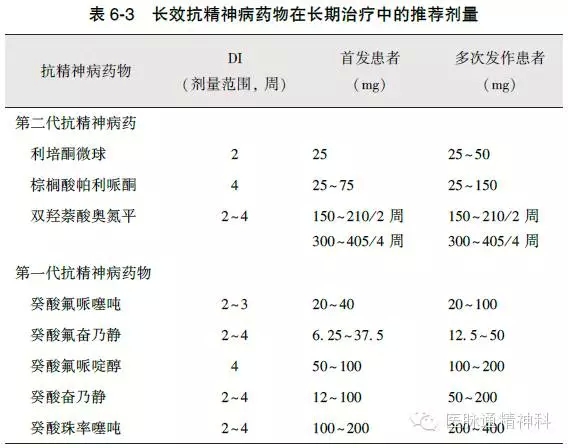 二、長效抗精神病藥物在長期治療中的推薦劑量