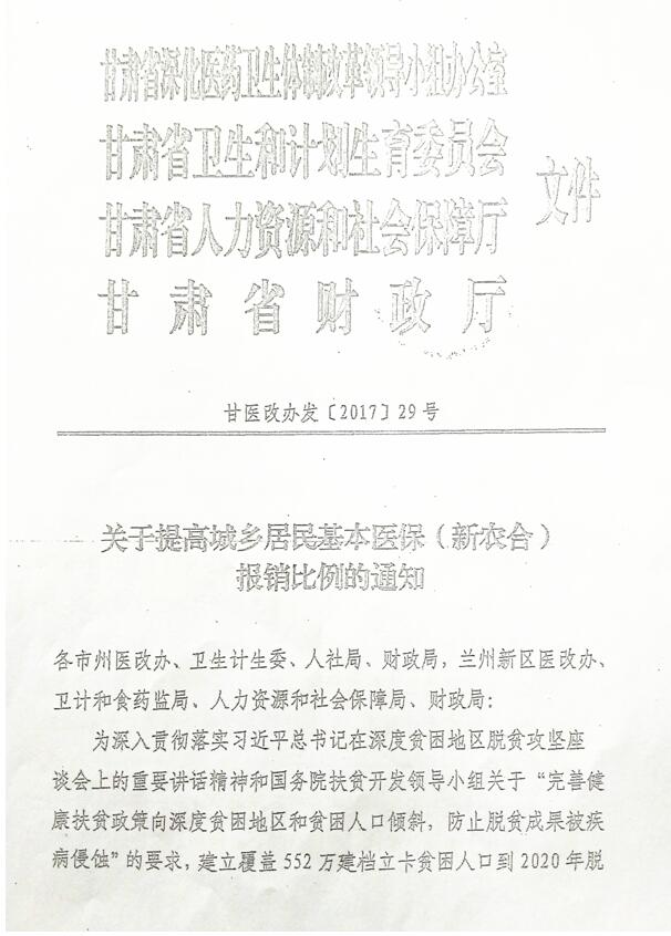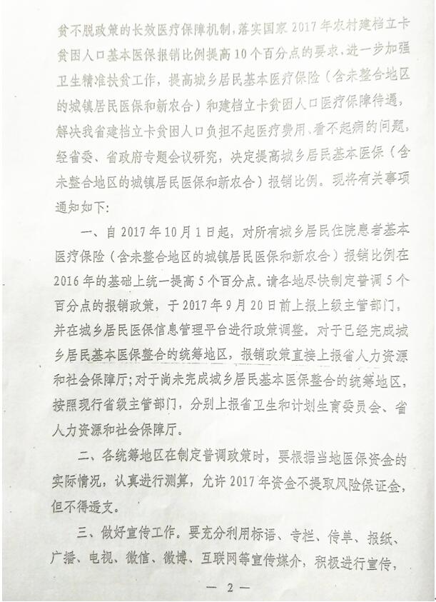 關(guān)于提高城鄉(xiāng)居民基本醫(yī)保(新農(nóng)合)報銷比例的通知