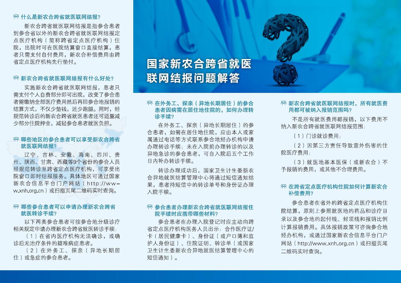 蘭州市第三人民醫(yī)院作為省衛(wèi)生計(jì)生委指定的跨省結(jié)報(bào)醫(yī)療機(jī)構(gòu)之一,也是甘肅省目前唯一一家簽約國(guó)家新農(nóng)合跨省就醫(yī)聯(lián)網(wǎng)結(jié)報(bào)的精神病??漆t(yī)院。按照省市衛(wèi)計(jì)委及新農(nóng)合管理局的要求,目前已完成與國(guó)家信息平臺(tái)的對(duì)接工作,凡符合上述簽約省份的新農(nóng)合患者在蘭州市第三人民醫(yī)院就醫(yī),出院后即可在本院辦理即時(shí)結(jié)算,只需支付個(gè)人自付金額部分,不需再回新農(nóng)合參保地報(bào)銷。
