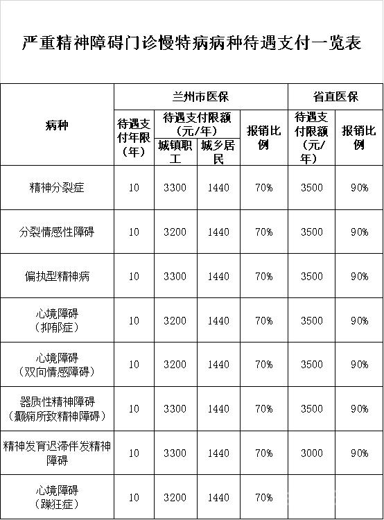 嚴(yán)重精神障礙門(mén)診慢特病病種待遇支付標(biāo)準(zhǔn)